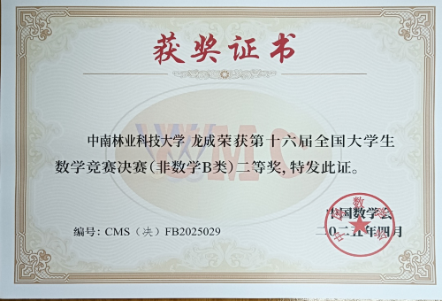近日,第16届全国大学生数学竞赛决赛在浙江师范大学落下帷幕。我校经济管理学院2021级金融学专业龙成同学获得非数学B类全国二等奖。据悉龙成同学在湖南省大学生数学竞赛预赛中以非数学B类第一入围决赛,在决赛中从105名同组竞赛学生中脱颖而出,获全国第29名,取得我校在该项赛事的历史最佳成绩。