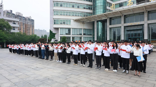 5月8日早上,我院在陶铸广场举行以“学思践悟二十大 科技报国担使命”为主题的“国旗下的誓言”爱国主义教育活动暨“学习贯彻习近平新时代中国特色社会主义思想主题教育”实践活动。学生工作部副部长洪晶波、院党委书记李健林、党委副书记何伟、全体辅导员、全体党员、团学干部代表及2022级全体学生等1000余人参与此次活动。
