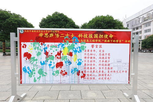 本次活动激发了全体师生的爱党爱国爱校热情,引导同学们坚定不移听党话、跟党走,立志做“有理想、敢担当、能吃苦、肯奋斗的新时代好青年。大家纷纷表示,作为当代大学生,将牢记初心,对党忠诚,自觉践行“请党放心,强国有我!科技强国,必定有我”的铮铮誓言,勇做奋进者、开拓者、奉献者,让青春在谱写中国式现代化的火热实践中绽放绚丽之花。