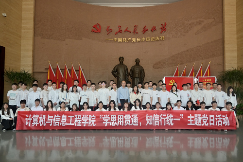 为深入开展学习贯彻习近平新时代中国特色社会主义思想主题教育,512日,计算机与信息工程学院组织学生党员走进中国共产党长沙历史馆参观学习,开展“学思用贯通,知行信合一”主题党日活动。学院党委书记李健林,学院组织员兼支部书记陈慧慧,辅导员罗金城参加活动,重温百年红色党史,推动主题教育走深走实。