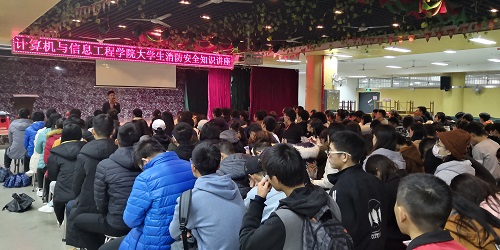 2018年11月20日晚上7:00,计算机与信息工程学院在大学生活动中心举办大学生消防安全知识讲座。此次活动由经验丰富的消防员教官刘戍成授课,辅导员和寝室长们参加讲座。