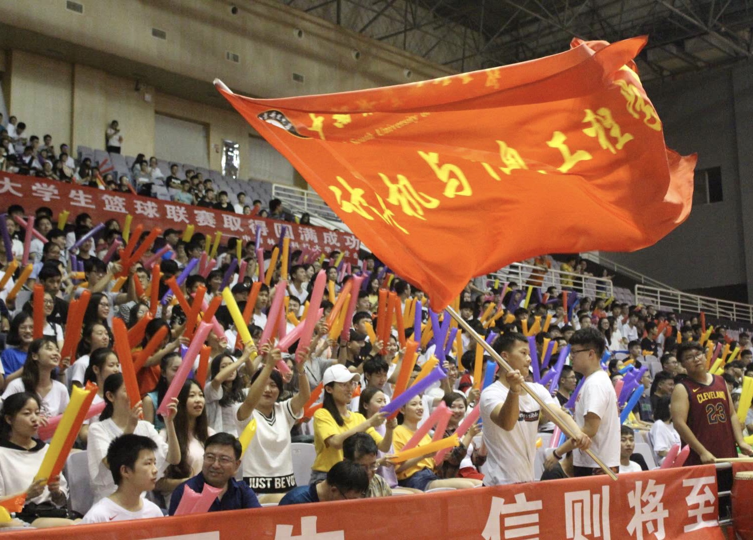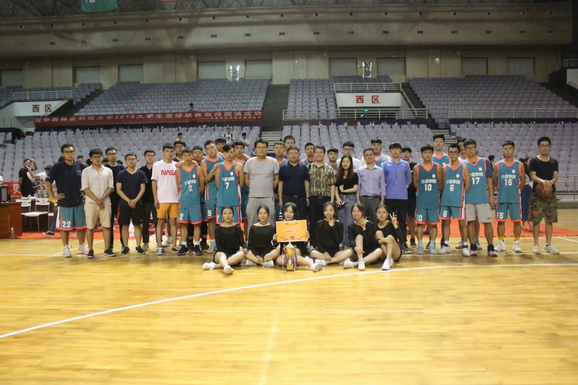 6月10晚8点,中南林业科技大学男子篮球联赛总决赛在体育馆正馆举行,计算机与信息工程学院对战机电工程学院。我院党委书记卢兆银,副书记何伟,副院长李建军和全体辅导员出席,部分15、16级同学以及17级全体同学到场为球队球员加油打气。