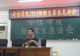 9月8日下午3时,我院在电子信息楼709召开了2016级新生家长座谈会,院长谭骏珊、党委书记颜春玉出席,党委副书记张学兵带领全体辅导员参加。