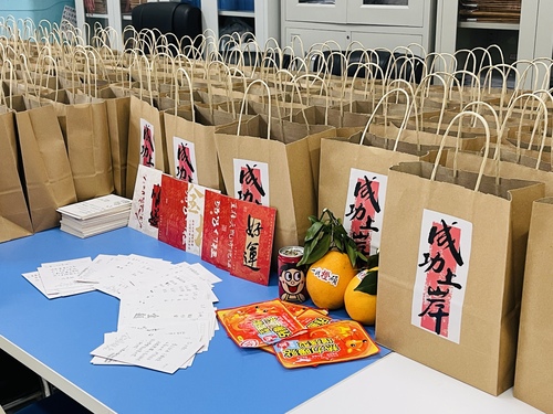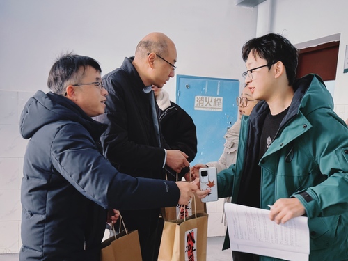 在考研冲刺的关键时刻,为表达学院对考研学子的深切关怀和良好祝愿。2024年12月19日,学院党委书记李健林、副院长(主持工作)李建军、院党委副书记武忆涛、2025届毕业班辅导员谭玉香、学工办辅导员代表曾丽霞和刘帅前往东图书馆、树人楼自习室、宿舍等地为考研学子送上诚挚的祝福与考研温暖包,共送出考研温暖包174份。