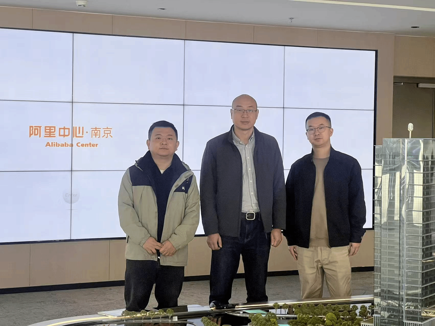 在南京期间,看望了校友代表李炳义(2001级)、毛建文(2003级)和刘俊(2003级),李健林诚邀在苏校友回“家”看看,重走校园路,再叙同窗情,共话发展蓝图。随后,学院前往阿里巴巴江苏总部等,详细了解阿里巴巴发展历程、产业布局等情况,并围绕人工智能、数字经济等方面进行交流探讨。