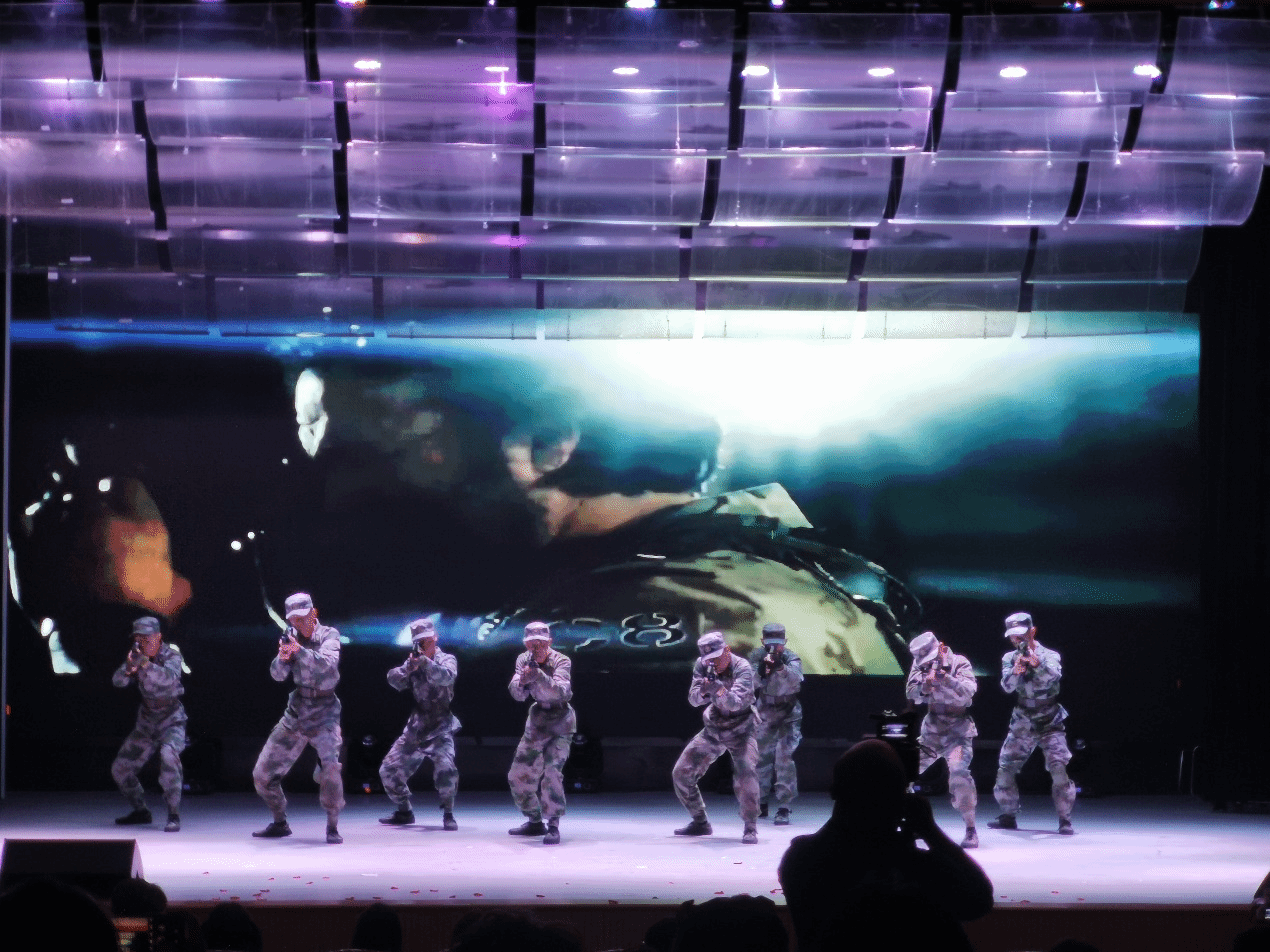 随着热烈的掌声响起,晚会在学院艺术团演员激情洋溢的开场舞中拉开了帷幕。歌舞、小品、朗诵、快板、歌曲联唱、战术表演等精彩的节目为观众呈现了丰盛的视听盛宴。来自2020级计科五班的齐舞《大碗宽面》和艺术团的齐舞《say so+mop》,动作优美,引人入胜;由2020级软工三班带来的快板奇袭白虎团精彩绝伦;由2020级自动化一班自编、自导、自演的小品《脱贫攻坚》生动展现了我国在脱贫攻坚道路上取得的显著成就;同学们期待万分的军协战术表演节目以及艺术团的礼模更是带来了视觉盛宴;诗朗诵《古往今来,青年前行》婉转优美,感人至深,让我们心怀感恩,向逆行者致敬!由2020级电科一班带来的歌曲《国家》唱出了“有了强的国,才有富的家”的真挚爱国情感;以及2020级电信专业带来的歌曲《萱草花》展示了母爱的伟大;也有倾情的歌曲联唱《爸爸妈妈+飘向北方+最初的梦想+我和我的祖国+告白》。整场晚会精彩不断,高潮迭起,赢得台下阵阵掌声,欢呼声一浪高过一浪。一首来自2020级自动化四班的合唱《我爱这蓝色的海洋》饱含着对党和祖国的忠诚信仰及美好祝愿,为本场晚会划上了圆满的句号。