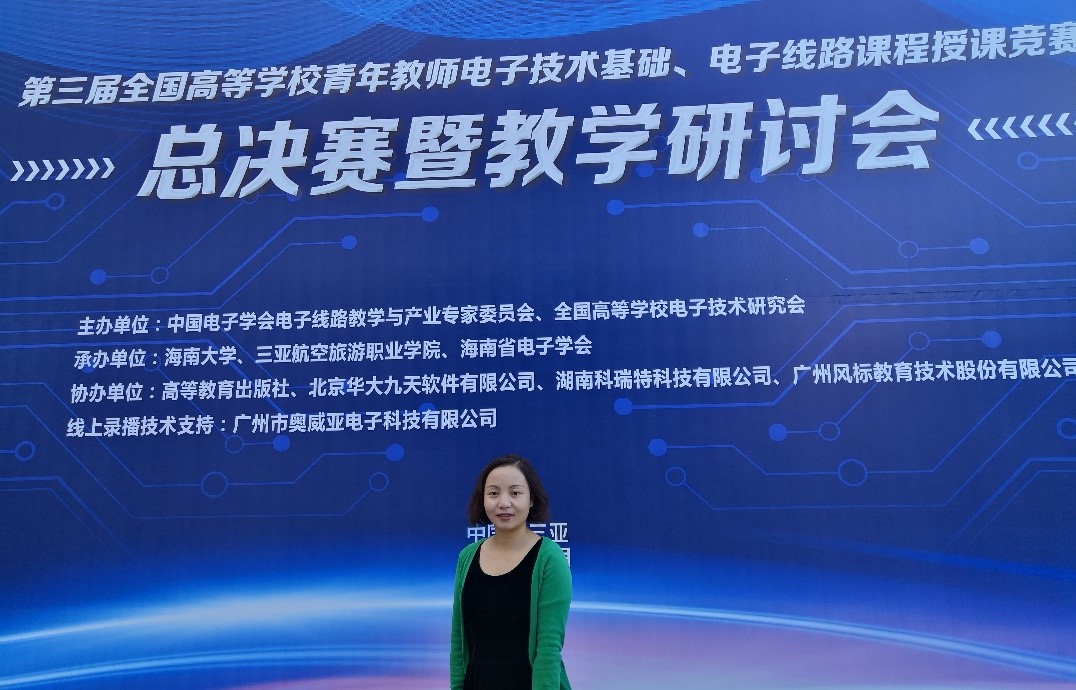 2020年12月3日至7日,由中国电子学会电子线路教学与产业专家委员会、全国高等学校电子技术研究会主办的第三届全国高校青年教师电子技术基础、电子线路课程授课竞赛总决赛暨教学研讨会在海南三亚航空旅游职业学院召开。我院教师李琳在学院的领导和支持下,通过7月份的赛区选拔,进入全国总决赛并喜获数字电子技术基础组二等奖。该比赛已纳入中国高等教育学会“全国高校教师教学竞赛状态数据”,作为全国高校教师教学竞赛的评价依据之一,也是我校教务处所鼓励和支持的教学比赛之一。