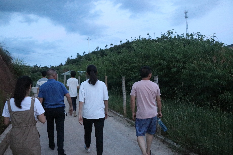 刘琼村长与刘章俊书记陪同队员们参观金钟桥村