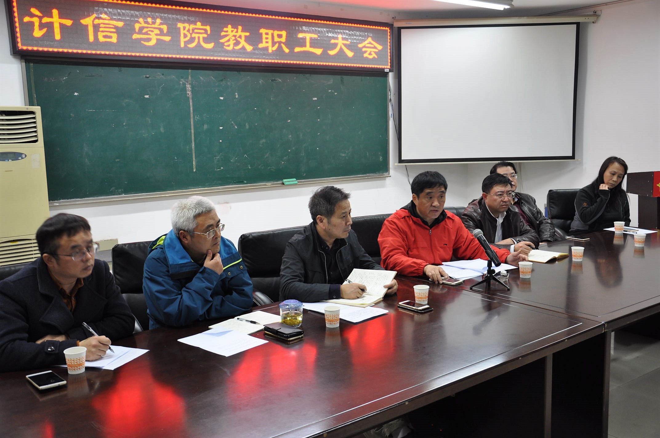 2017年11月13日下午4点整,计算机与信息工程学院在电子信息楼709室举行计信学院教职工大会,我校正校级督导任湘郴出席、我院院长谭骏珊、学院领导班子和全体教职工参加,院党委书记卢兆银主持。