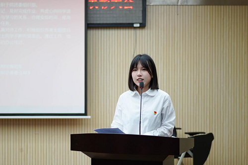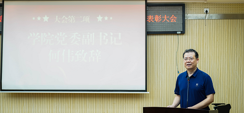 大会第一项:学院党委副书记何伟为本次大会致辞。他肯定了过去一年团委学生会的各项工作成果,并对新一届的学生干部提出殷切希望:希望同学们不忘初心使命,明确目标定位;秉承优良传统,创新工作模式;树好自身形象,打造特色品牌,争做有理想,敢担当,能吃苦,肯奋斗的时代新人,为学院的发展和进步贡献自己的力量。