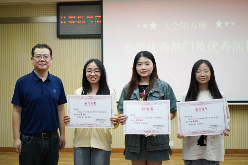 大会第三项:表彰优秀部门及优秀部长。主持人宣读计算机与信息工程学院团委学生会优秀部门和优秀部长表彰决定,学院领导、老师为获奖的部门和个人颁奖。