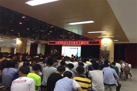 为了加强新生的安全防范意识,减少受骗事件的发生,2015年10月19日,计算机与信息工程学院开展了一次大学生安全教育活动。学院2015级全体新生参加了此次活动。