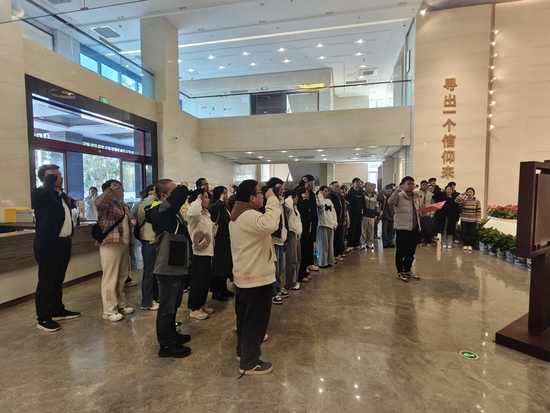 参观结束后学院还组织了新党员宣誓和老党员为新党员佩戴党徽仪式。面对党旗,党员们高举右拳,用铿锵有力的誓言表达了对党忠诚、为共产主义事业奋斗终身的坚定决心。活动现场气氛庄严而温暖,师生们心潮澎湃,倍感作为党员的光荣和责任。
