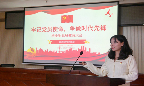 2023年6月5日晚7点,中南林业科技大学自动化学生党支部“牢记党员身份,争做时代先锋”毕业生党员专题党课在求是楼709会议室拉开序幕。“你为什么入党,入党干什么?”党支部书记谭玉香在课前直接发问,引导党员认真思考入党动机和党员身份。课上引用大量党史上先进人物勇树理想、不懈奋斗、自找苦吃的生动事例,围绕“时刻牢记党员使命”、“传承红色基因”、“争做时代先锋”三个方面进行讲述,勉励各位毕业生党员志存高远,勇担使命,求是求新,在奋进新征程的道路上进一步发挥党员先锋模范作用,用青春书写新时代的荣光。