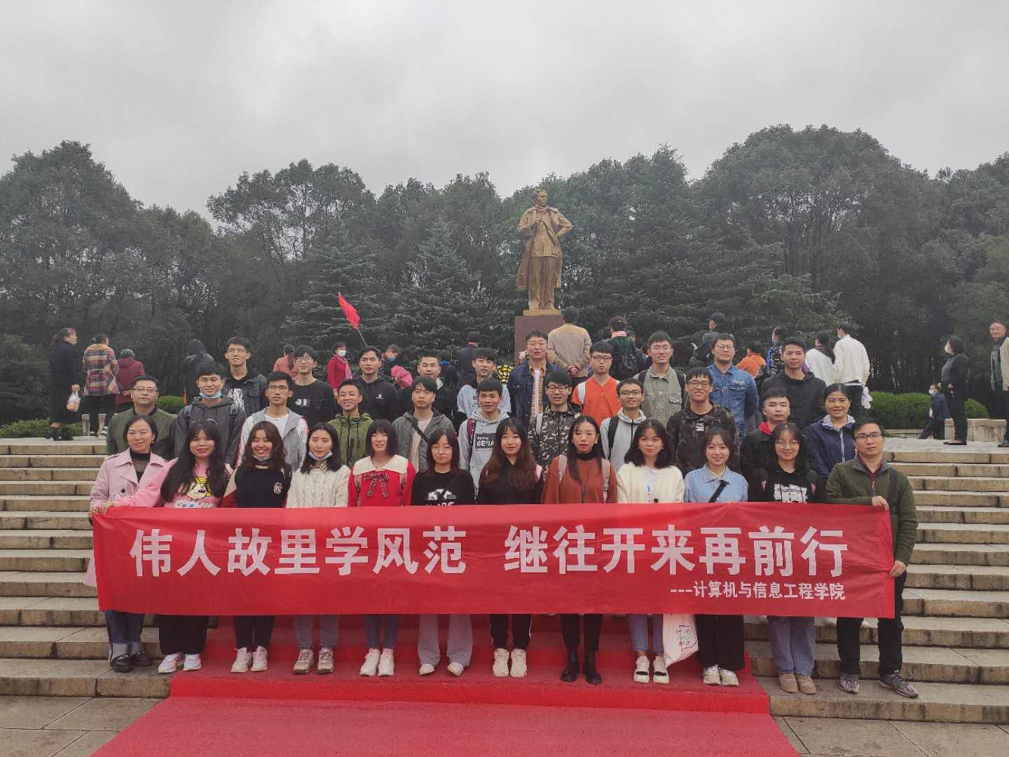 为缅怀老一辈革命先烈的战斗历程和丰功伟绩,继承和发扬党的革命传统和优良作风,2020年11月1日,学院学生党支部一行40人赴韶山毛泽东故居和宁乡刘少奇故居开展以“伟人故里学风范,继往开来再前行”为主题的党建活动。
