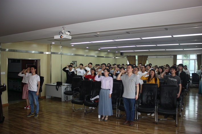 最后,全体毕业生党员重温入党誓词,奏唱国际歌。