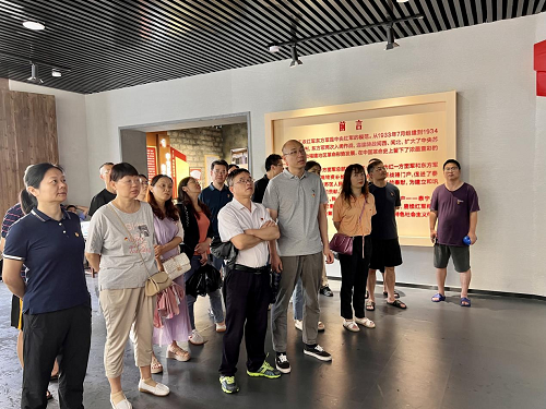 重温战争历史,缅怀革命先烈,走进爱国主义教育基地红军街让人不由心潮澎湃!街区内完好保留着红军总部暨朱德周恩来旧居,红军标语墙、红军井、苏区银行等众多革命遗址遗迹。英勇东方军主题纪念馆设置了《中央苏区 向东挺进》《出征东方 移师泰宁》《挥师东进 挺进闽北》《重新组建再征入闽》《泰宁苏区——中央苏区向东挺进战略门户》五个篇章,以珍贵而详实的历史照片、历史文物、历史档案等,通过图文展示、文物展览、VR/AR场景体验等展陈手段再现了东方军执行向东挺进战略的英勇历程。参观学习中,教职工党员了解了工农红军革命先辈“三进三出泰宁”的烽火岁月,深刻领悟老一辈革命家追求真理、不怕牺牲的革命品格,并结合各自的工作岗位和专业技能,在学习中增长见识、 在实践中提升水平,努力做到践中学、学中悟、悟中行!