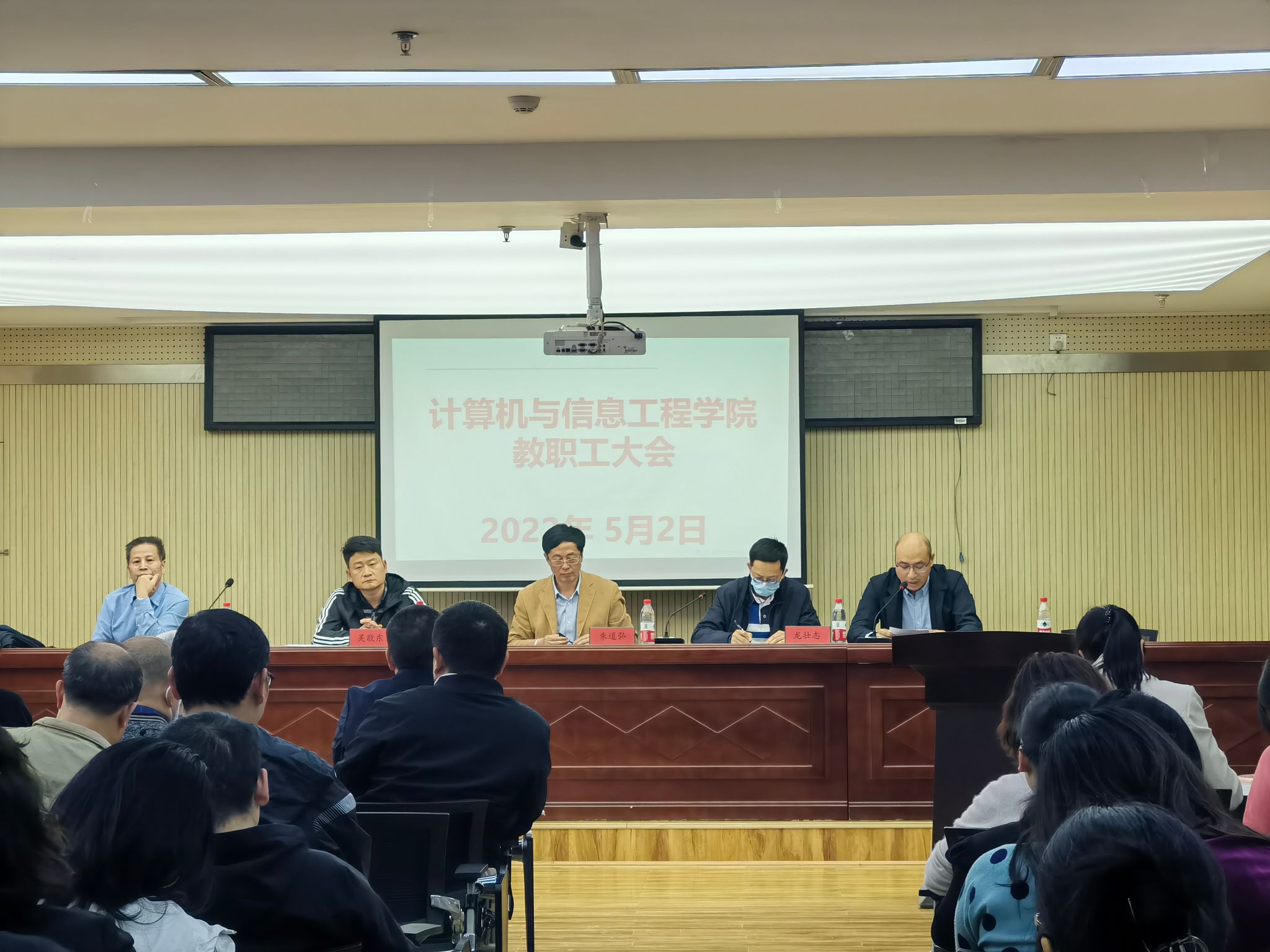 2022年5月2日下午2:30,计算机与信息工程学院在求是楼709报告厅召开全体教职工大会,会议分两个阶段。
