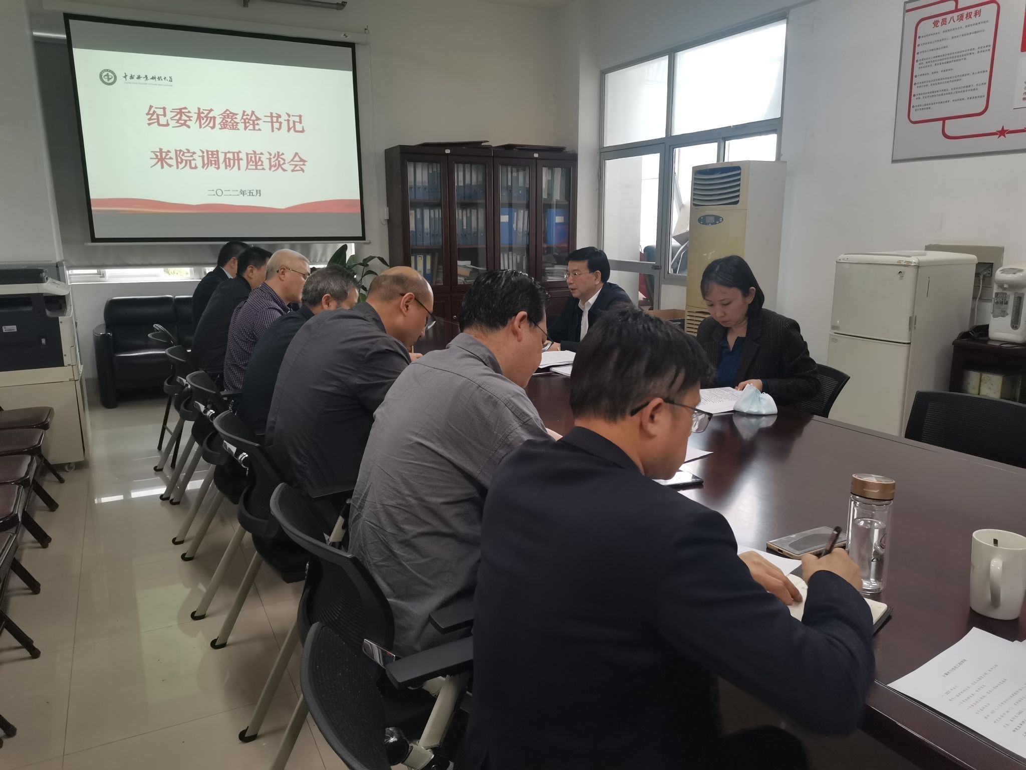 2022年5月12日下午,学校纪委书记、省监委驻校监察专员杨鑫铨一行到计算机与信息工程学院调研指导工作。机关一党委副书记、纪委办副处级纪检员王静陪同调研。计算机与信息工程学院班子成员谭骏珊、李健林、何伟、陈爱斌、李建军、邝祝芳、蒋峰及支部书记代表陈慧慧、王传立参加调研座谈。