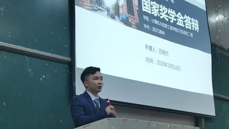 参加答辩的同学从个人展示、学习情况、社会实践、科技创新等各个方面对自己获得的成绩和对未来的展望进行了陈述。他们或慷慨激昂,或娓娓道来,整场答辩会气氛热烈,掌声不断,高潮迭起。答辩会历时两个小时,经过评委打分和观众打分,结合基础得分,最终确定推荐2017级覃凌杰、张舸航,2018级黄双杰、沈艺勤共4位同学为国家奖学金获得者。