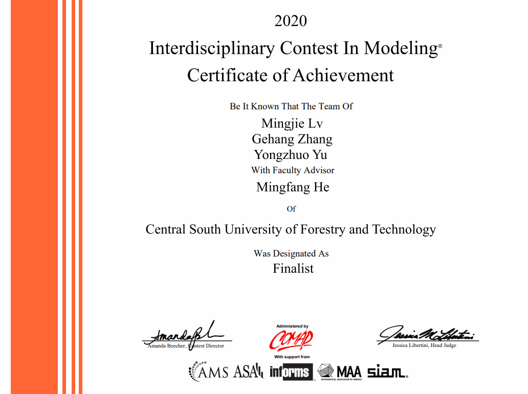 近日,2020年美国大学生数学建模竞赛与交叉数学建模竞赛(MCM/ICM)成绩公布,我院周国雄博士、何明芳博士指导学生参赛并荣获佳绩!