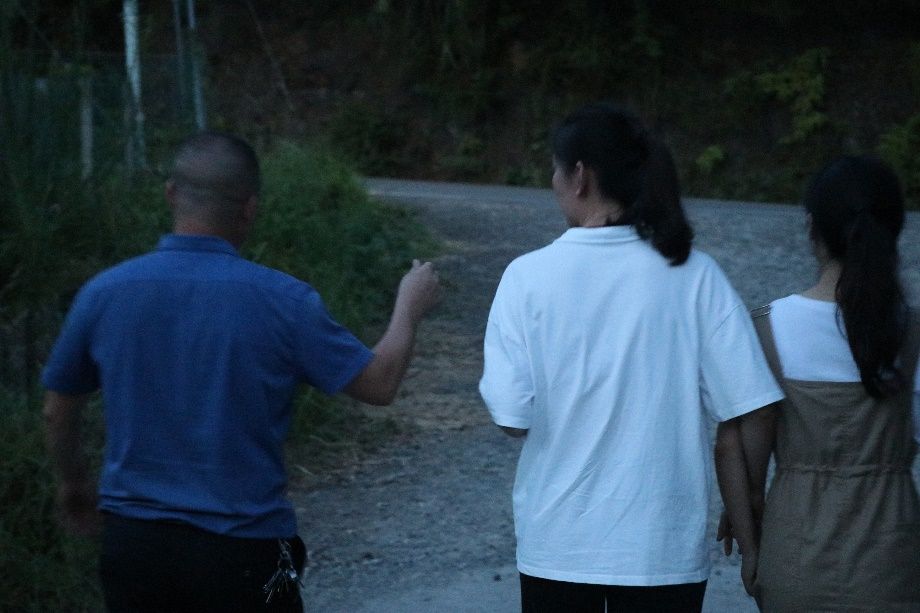 图3 刘琼村长与刘章俊书记陪同队员们参观金钟桥村