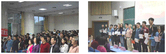 之后由陈院长宣读获奖名单,获得国家励志奖学金的有纪宇等64人,获得省级三好学生称号的有刘伟杰等44人,获得优秀学生干部的有段棨腾等70人,获得优秀学生甲等奖学金的有叶青青等56人,获得优秀学生乙等奖学金的有盛凯强等86人,获得优秀学生丙等奖学金的有舒冰心等137人。