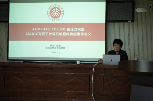 应计算机与数学学院邀请,7月5日下午4点,北京大学计算机学院张铭教授、南京大学计算机学院陶先平教授在求是楼709会议室分别作题为《ACM/IEEE CC2020胜任力模型对AIGC背景下计算机教育的指导意义》和《大国工匠的软件能力及其培养》的学术报告。报告由陈红斌副院长主持,计数学院主要领导、部分教师和学生共计150余人参加了报告会。